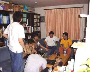 7月31日(金) 午前9時。テストプレイ部屋に行くが、不動産屋さんにもらった カギが合わない。不動産屋に電話したり、家具が配達されるのを 『チョコバナナ』投稿者・神谷栄和に待たせたり、『桃太郎伝説』 の原稿を書きに戻ったり、いろいろあっちこっち大騒ぎ。 午前11時。名古屋から中尾淳到着。 午前11時すぎ。『チョコバナナ』投稿者の×××××サン(本 人の希望により削除)サンが来る。×××××サン(本人の希望に より削除)は『チョコバナナ』15巻で百点を突破した記念で、編 集部訪問で来た。でも元セガの社員だったこともあって、『さくま 式人生ゲーム』でも、どんぶるサンのCGを作ってくれたり、いろ いろと手助けしてくれている。 きょうもうちの嫁のMac用に、私がちょこちょこ動くスクリーン セイバーのようなものを作って来てくれた。私のキャラの動きが妙 におもしろい。私がアニメで動くのは、『Dr、スランプ』以来だ。 まさかコンピュータのなかで動くようになるとは思わなかった。 午後11時30分。近所のエスコッツで昼食。 きょうは一日人の出入りがが多いので、まずエスコッツのメンバ ーから紹介。×××××サン(本人の希望により削除)、神谷栄和、 中尾淳、嫁、グルメ・バカ娘。 午後1時。『さくま式人生ゲーム』のテストプレイ。 午後1時すぎ。『チョコバナナ』投稿者・今井一志が来る。 午後3時。増田景子さんが来る。タカラの高田さん、小沢くんが 来る。原口一也も来る。原口は昨日持ち帰れなかった本を取りに来 た。小沢くん、高田さんとは今、仕事しているので、ご挨拶。 午後3時30分。POWの渡辺さんが『さくま式人生ゲーム』の 新しいロムを持ってくる。 新しいロムを見ながら、こまかい箇所の打ち合わせ。名前入力の だんどりひとつでも、ああしたほうがスムーズ、こうしたほうがわ かりやすいと議論。 新しいロムはグラフィックが大幅に増えて、まるで完成したゲー ムを見るようだ。変更をお願いした部分のグラフィックがみんなよ くなっているので、うれしい。このゲームにこういうツキがある。 月のあるゲームは、直せば直すほどよくなるが、悪いゲームは直し ても直しても、もっと悪くなっていくから不思議だ。 さらに問題点が出たが、応急手当のつもりが、その打つ手がゲー ムのおもしろさを倍増させるアイデアが出る。このゲームには本当 にツキがある。このツキがこのままずっと続いてくれると、うれし い結果も待ってるんだけどなあ。 午後5時。土居ちゃん(土居孝幸)も到着。『さくま式人生ゲー ム』の新しいロムをいっしょに見る。 午後6時30分。人数が多すぎるので、ついに二手に分かれて、 食事をすることになった。 私のほうは、ちゃんこ鍋の「天海地」へ行く。メンバーは、タカ ラの高田さん、小沢くん、土居ちゃん、POWの渡辺さん、増田景 子さん。新しいロムの出来がよかったのと、手直し部分が今後よく なりそうな予感がするので、和気藹々の食事になった。 土居ちゃんが『さくま式人生ゲーム』の4コマ本出せばいいのに と珍しく積極的なことを言ったぐらい。 『さくま式人生ゲーム』とベイスターズの調子がこのまま続いてく れい! 午後9時。神谷栄和が甲府に帰る。 午後10時。鍼灸師の弓削くんが来る。 ところでまた明日から京都に行きそうだ。明日はまだテストプレ イ部屋の引っ越しの続きがあるのだが、早く終了すれば、中尾淳と 京都に行くことになっている。となればみなさん期待の中尾淳話も 飛び出すと思います。乞うご期待! 帰京は、8月4日の予定。忙しいの〜。