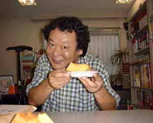 7月3日(金) 午前中『チョコバナナ』16巻の編集作業。 お昼。赤坂の津つ井で岸本さんと待ち合わせ。 岸本さんは、インターネット上で、オムライスのホームページを 開いている人。最近すっかりネット・サーファーとなってしまった 嫁が以前から、この人すごい、すごいを連発していて、例によって、 プリント・アウトしてもらって、何件かオムライスを食べに行って いた。 岸本さんはラーメンで『TVチャンピオン』にも出ているそうだ。 そのうち嫁が「書き込み」とかいうやつをやったのかな? またインターネットのことになると、結びつきを説明するのが難 しいぞ。いまわかりました。 メールを送ったそうです。 そこでお互いの素性がわかって驚いた。 岸本さんというのは、ナムコの人で、なんとあの『ファミスタ』 生みの親だったのです。ゲーム通の人に聞いたら、まさしく『ファ ミスタ』といえば、岸本なのだそうだ。まったく私はゲーム業界に ついてほとんど知らないので、とんでもない偶然となってしまった。 というわけで、一度会いましょうということになって、きょうの 津つ井での待ち合わせということになる。ふう。長いイントロだ。 赤坂の津つ井は、洋食屋さんとしても有名なお店。 本来はオムライスの話で燃えるはずだったのだが、野球と歴史の 話を始めてしまったら、珍しく私が饒舌になって止まらなくなって しまった! 何たって、お城の名前を注釈をまったく入れずにしゃべれる相手 に会うなんて、本当にひさびさ。 「京都の伏見城は、いかにも秀吉らしくていいと思いません?」 なんて言われると、ぞくぞくしてしまう。 変態同士がその趣味をついに告白したみたいだ!というと、どー もたとえが悪すぎる。 さらに野球の話をすると、2軍選手の名前を出してもわかっても らえる。こんな人に会うのは、プロ野球業界の人に会って以来だ。 すごいや。すごいや! 野球と歴史の話をして、私よりも詳しい人に会えるなんて! 『ドラゴンボール』の悟空が、強敵に会ってよろこんだみたいだぞ。 食後も近くの喫茶店に場所を移して、野球の話に熱中。 すっかり嫁をそっちのけにしてしまった。ゴメン。 ダメだよ。横須賀の隣にある追浜球場まで、ベイスターズの2軍 戦を見に行くような人が目の前にいたら。岸本さんはいろんなチー ムの2軍戦をよく見に行くそうだ。 すごいや、すごいや! 3時すぎ。嫁が近視手術の検査で、病院に行かなければならなく なって、会話はストップ。はっはっはっはっは。 このまま『朝まで生テレビ』になってしまうところだった。 それにしても世の中には凄い人が、まだまだたくさんいるもんだ なあ。うれしいなあ。 午後4時過ぎ。錦糸町の錦糸医院へ行く。 病院なので、待たされること、待たされること。 嫁の検査が終わったのは、なんと6時過ぎ。 駅まで歩いて、千駄ヶ谷駅からまた歩いたら、きょうのあの熱中 病で死者まで出た暑さ。 家の手前でついにダウン。 喫茶店で、涼む。口パクパク。 午後7時。喫茶店の前の居酒屋「ぎっちょん」で食事して帰宅。 そのままベッドにばたりで、寝てしまった。 ちゃんとテレビ神奈川のベイスターズ天国だけは見たけど。