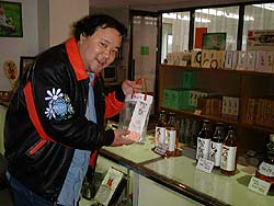 午後6時30分。お店を出ようとすると、ちょうど入って来た お客さんが「あ〜、やっぱり! さくまサンに、戸田さんに、 ショッカーO野さん!」 「え? あれ? またハドソンの人?」 「いえ、あの真咲素(まさき・もと)と言います!」 「え? あの戸田圭祐とかの掲示板とかで見かける真咲くん?」 「はい! さくまサン来るんじゃないかと思って、夫婦で狙って来 ました!」 「うれしいねえ! 狙ってくれたんだ!」 ばったり病、第2弾である。 奥さんは写真に写るのを嫌がったので、真咲素くんといっしょに 記念撮影! ![]()