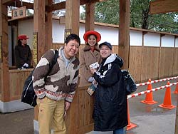 3月25日(土) ぴゅるるるるるっ〜〜〜! 京都は風が吹くと、寒い。比叡おろしと呼ばれる突風が吹くと、 骨にまで届くような冷たさに、苦しめられる。 きょうはこれから東京に帰らないといけないというのに、薄着な のがつらい。 コート着てくればよかった。 これじゃ風邪も引くよな。 その風邪は、ことのほかひどくて、風邪と花粉症のダブル・パン チで、ティッシュペーパーの山を築いている。 ユンケルも飲んだけど、鼻水ちゅるちゅるが止まらない。 鼻詰まりのまま、しゃべるはとてもつらい。 午前10時。土居ちゃん(土居孝幸)、宮路一昭くんのラーメン夜 食兄弟と、放送作家の福本岳史(デブ、0、1t)くんが来る。 そのまま京都駅へ。 うおおおおおっ! 寒い。 おまけに小雨までぱらつき始めた。 このまま東京に帰りたけど、この1週間、仕事の合間にみんなで NHK『葵・徳川三代』の話ばかりしていたので、やっぱり大垣に 行きたくなる。 きょうから大垣城公園で、NHK主催の「大垣博覧会」が始まる のだ。デブ4人で、大河ドラマ完全タイアップのイベント、しかも 初日に行くのは恥ずかしい気もするけど、おもしろがりのメンバー 揃いだけに、何の疑問もなく、大垣に向かう。 ちょうどいま関が原の合戦をテレビでやっているところで、先週、 先々週と、この大垣城がメイン舞台なだけに、行きたい気持ちは満 点である。 まず京都駅のみどりの窓口で、キップを買う。 土曜日に、春休みの初日が重なって、新幹線は軒並み、満員の「×」 マークが並んでいる。 ところが行き先が、岐阜羽島駅なので、ちょうど席が空いている。 福岡方面から来た、お客さんは新大阪か、京都で降りる。 京都から名古屋までは空席が目立つが、名古屋からまた東京まで はぎっしり席が埋まる。 岐阜羽島駅は、京都と名古屋の間にあるので、こうして4人の席 が取れてしまうのだ。 キップを買ったら、伊勢丹デパートB2へ。 みんなのリクエストで「はつだ」の特選和牛弁当を買うのだ。 昨日一足先に帰った、カズ坊(関口和之)も、国政修くんも、こ の「はつだ」の特選和牛弁当のお弁当を買って行った。 午前10時57分。ひかり230号。 新幹線に乗って、さっそく「はつだ」の特選和牛弁当を食べる。 実は早く食べないと、岐阜羽島駅にすぐ着いてしまうのだ。 乗車時間は、わずか36分間しかない。 福ちゃんが、「はつだ」の特選和牛弁当を口にしたとたん、箸を持 つ手が止まる! 「こ、こ、これは…!」 「これって、むちゃくちゃデブが好きになる食べ物ですよね! お 肉がお弁当全部に敷き詰められていて、しかも、甘い! 肉が甘い って、いいですよねえ!」 早い! 土居ちゃん(土居孝幸)、お弁当食べるの、早い! 10分ぐらいで食べ終わって、さっさと週刊モーニングを読んで いる。 「何でそんなに早いの?」 「昔から業界人は、早飯、早糞、芸のうちと言われてきたから!」 そういえば、最近この言葉を聞かないなあ。 私などもこの業界に入ったばかりのときは、必ず先輩からこの言 葉を教えられた。 そう思うと、最近の人は、堂々と先輩より遅く、食べ終わるもん なあ! 午前11時33分。岐阜羽島駅。 みんな、口々に「この駅降りるの初めてだなあ!」とつぶやく。 私も2年前にこの駅から、新幹線に乗ったことあるけど、二度と 乗ることないかもなあと思いながら、乗ったおぼえがある。 タクシーで、大垣に向かう。 午後12時。あっというまに大垣城公園に着く。 おお! やってる! やってる! 入り口で、ただの観光好きのおっさんたちを演じるために、わざ わざコンパニオンのお姉さんたちといっしょに写真に収まる。 こういうイベントのときは、下品なふるまいこそ、楽しい。火縄銃を持っている、地元の火縄銃保存会の人とも、楽しく談笑 する。火縄銃を持たせてもらう。重い! 「これでも軽いほうなんだよ〜」と、甲冑を着た人たちに笑われる。 ![]()
