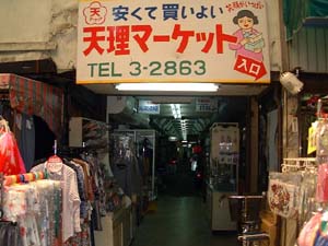 手塚治虫さんの『火の鳥』で、吉備真備が登場したシーンを思い出したの だが、このたとえがピンと来る人も少ないだろうし。 かつて私が見た、どの敷地よりも広く、どの建物よりも大きい。 上野の国立博物館10個分くらいといったほうが、その大きさを少しは感 じてもらえるかもしれない。 午後12時45分。ひときわ大きい本部の脇を抜けると、「天理本通り」 という商店街が見えて来た。 すで天理大学構内、天理教本部を歩き抜けただけで、もうへとへとである。 グルメ・バカ娘もぐったりとした顔をしている。声をかけても、ゆっくり首 をこっちに向けるだけで、声を発しない。 わかるよ。暑いよな、広いよな。 天理本通りがまた長い。 古めかしい商店街だ。この景色どこかで見たことがあるぞ。 あっ! 東京は阿佐ヶ谷の商店街だ。 似てるなんてもんじゃない。 目隠しされて、連れて来られたら、絶対「ここは阿佐ヶ谷だ!」と自信持 っていえるくらいそっくりだ。 これほどまで似た場所というのも珍しい。 ![]()