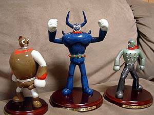 8月17日(木) 昨夜からちょびちょび見てるビデオは『生きてはみたけれど/小津安二郎伝』。 小津安二郎監督ゆかりの人々にインタビューして、その仕事の軌跡をたどる ドキュメント。 小津安二郎さんの作品というと、父と子とか、家庭がテーマなものばかりなの で、どうも子供の頃から、私にはなじめない作品群だった。 そこで、『知ってるつもり』のようなドキュメントを見て、もう一度小津安二 郎さんの作品を見直してみようかと思ったのだ。でも複雑な家庭環境に育った私 には、さらに作品との隔たりを強く持っただけであった。それでも今後数本は見 てみようと思ってる。願わくば子供の頃見た印象と違ってほしい。 午後12時。初台「オペラシティ」B1。 家族3人「ロッテリア」で食事。炭焼きチキンに、ロッテリアシェーキ、コー ヒー。炭焼きチキンの美味しさは絶賛もの。やっぱり大衆バーガーでは、ロッテ リアか、モスバーガーだねえ。 食後、「手塚治虫ワールド」へ。 先日、田森庸介さん、岩崎摂さん、福本岳史くんと来て、電気工事で臨時休業 だった場所だ。私がよくTシャツを買いに行く京都駅の「手塚治虫ワールド」の 本店。 例によって、また『鉄腕アトム』のTシャツを2〜3枚ほど買ってしまう。こ れで子供向け、レディス専用以外のTシャツを全種類買ったはず。えばってどう する! 少なくとも田森庸介さんは悔しがってくれるだろう。さて、なぜこんなに早く再度「手塚治虫ワールド」に来たかというと、この初 夏くらいから『鉄腕アトム』の「地上最大のロボットの巻」に登場したロボット たちのフィギュアが毎月発売されていることを、キャッチしたからなのだ。 この「地上最大のロボットの巻」は、私の娯楽作品を作るときの原典中の原典 の作品。勘のいい人なら、なるほどと思えるはず。 鳥山明くんの『ドラゴンボール』に登場する「天下一武道会」も絶対、「地上 最大のロボットの巻」が元ネタだと思う。 そんな作品のフィギュアが出るとは、夢にも思ってもいなかったので、いても たってもいられなかったのだ。京都駅で見たとき、思わずその場で買って、東京 までつらいのに持って帰ろうかと思ったほど欲しかったのだ。 いちばん好きだったエプシロンのフィギュアが未発売なので思い留まれた。 しかし案の定、すでに発売済みのフィギュアのなかには、発売切れのものがあ って、まさか限定発売ではないか?とあせる。 ![]()