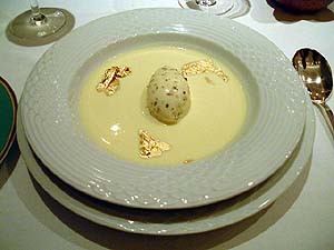 けっきょく私は予約して物を買うのは嫌いな性質なのだが、「地上最大のロボ ットの巻」だけは特別。全作品を予約して帰った。この「地上最大のロボットの 巻」シリーズのフィギュアは精巧によく出来ているし、値段も安いので、お買い 得ですよ。とくに田森庸介さん! 私よりフィギュア好きな田森庸介さんが、この「手塚治虫ワールド」に来たら、 常人の予想で、10万円。私の予想で、最低20万円。最大50万円つかうと見 たな! ちなみにきょうの私の出費は、全作品を予約したので、約5万円。大人になっ てからのハシカは手におえないねえ! 自分で言ってりゃ世話ない。 午後3時。ほかのフロアで日曜雑貨など買って、帰宅。 再び、ビデオ『生きてはみたけれど/小津安二郎伝』の続きを見る。どの作品 も戦前だったりする。といっても、チャップリンの作品だって、戦前の作品ばか りなんだからおなじだよなあ。 作品を作る姿勢は、黒澤明監督とおなじなんだけど、感じる温度が違うのはな ぜなのかなあ。もうしばらく小津安二郎監督作品を見てから、答えを考えてみよ う。 夕方、やたらと電話がかかってきたり、電話をかけたり。みなさん「そろそろ ひさしぶりに会いませんか?」という連絡。でも私は明日からまた正常運転にな ってしまうのですよー。昨日までならよかったのにー! 午後6時30分。家族3人で、天現寺の「プティポワン」に行く。 実は明日のお昼、見たらびっくりするようなメンバーで、この「プティポワン」 にランチを食べに行く予定になっていたのだ。でもメイン・ゲストがキャンセル になってしまったので、また9月にでもと、延期になったのだ。 でも9月になったらと決めては見たものの、そんなに長い期間この食い道楽家 族が我慢できるわけない。もはや首筋の辺が「プティポワン」禁断症になってい る。行きたい、行きたい! せっかく減量がここ2〜3日調子よかったのに! 行ったら太るぞ! ええい、減量一時停止! ふにふに…。ふにふに…。 グルメ・バカ娘がすでに、イスに座った段階から、ふにふに微笑えんでいる。 このグルメ・バカ娘の「ふにふに…」が出るのは、京都の「M」と、ここと、 人形町の「喜(き)寿司」くらいのものである。 ふにふに…。ふにふに…。でれ〜! ふにふに…。ふにふに…。でれ〜。 わが娘ながら、だらしのない顔である。 いきなりマグロのお寿司が出る。もちろんフランス料理なのだが、どう見ても、 お寿司の形状。口にすれば、お寿司なるもやっぱり、フランス料理。 マグロが漬けになっていて、美味しいったらありゃしない。フランス料理を食 べた江戸っ子の気分ね。 さらにメイン・ディッシュが、フォアグラ丼。 本当に丼で、ご飯に、海苔に、わさび仕立てのアボガドに、刻み海苔まで入っ てる。これがまた腰が浮くような美味しさ。和食のようで、やっぱりフランス料 理のバランスが、よく出来たゲームのチューニングのようだ。 もともとフォアグラが苦手な私は、「プティポワン」のフォアグラだけは抵抗 無く食べることができる。 途中の冷製コーンスープは、アイスクリームまで入っていて、トウモロコシ大 好き家族はご満悦。 まあ、百聞は一見にしかず。 「プティポワン」の場合は、写真でお楽しみください。 ![]()