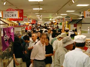 8月24日(木) 午前10時30分。新宿伊勢丹6Fの催事場で「大九州展」を見る。きょうは初日なので、ものすごい人の数。 デパートは空いているが、物産展だけは混むなあ。以前より若い子が増えている。 そのうち若い子中心に物産展のブームが来ると、睨んでいる。温泉だって、ブーム になったんだ、その可能性は大きい。 もちろん真っ先に行ったのは、いちばん奥の鹿児島県の出店。 いつも鹿児島ラーメンが来ていたのだが(って、毎年行ってるんだけどさ)、今 年は新メニューの「黒豚丼」が来ているとあっては、行かずにいられない。 ![]()