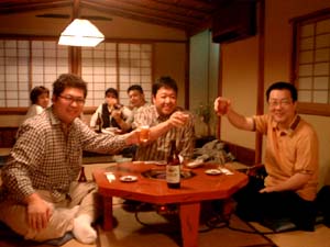 午後10時。ここでわが家族は、みんなと別れて、マンションに戻る。 このあとの酒飲み軍団の夜の行状は、柴尾英令くんのホームページでお楽しみくだ さい。昨夜の行状も知ることができます。 午前0時。うひょ〜い。また午前0時を過ぎてしまった。福ちゃんの話だけしか書 いていないのに、こんなに時間がかかるなんて! 明日は、京都合宿最終日。 桃太郎チームには、まだもうひとりメンバーがいるのだが、まだ到着していない。 まさかその男、会議に出席せず、夕飯のときだけ来るあの男ではないだろうな? その結末は、明日の日記で! それではまた! ![]()