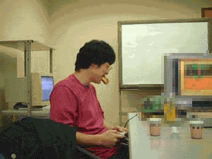 ミニゲームで、10段を記録すると、「免許皆伝」がもらえるとわかってからは、 ミニゲームを見つけると、今度はそこで、「免許皆伝」がもらえるまで、ゲームをや り続ける! これは、この『桃太郎まつり』を作った側にとっては、最高最大級、超ど級の評価 でうれしいかぎりなのだが、今度はひょっとしたら、このままどんちゃんは、ずっと 明日の朝までゲームをやめないのではという恐怖感が募る。 午後3時30分。お笑いコンビ・号泣のひとり、島田くんが、テスト・プレイに来 てくれたのだが、事情を話して、きょうのテスト・プレイを中止してもらう。ごめん ねー。 ![]()