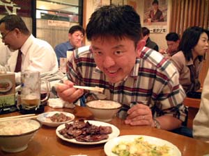 ちなみに、今年横浜ベイスターズを逆指名した吉見投手も、東北福祉大学の出身で ある。私が仙台びいきなのは、この地元東北福祉大学の出身が横浜ベイスターズに多 いからなのである。中根選手もそうだったかな? 午後5時30分。仙台駅地下街で、お土産屋さんを物色し、荷物を置いていたメト ロポリタン仙台に寄って、地下の「牛たんの喜助」に行く。 仙台は牛たんが有名である。 なかでも、「牛たんの太助」は特別有名である。 でも去年食べに行ったけど、格別美味しいとは感じなかった。 そこで、2番目に人気のある、この「牛たんの喜助」に来てみた。 正しくは、「牛たんの喜助」の喜ぶという字は、七を3つ並べるやつである。 このお店では、塩焼きと、たれ焼きの2種類ある。 6人中4人が、塩、2人がたれにして、両方の味を確かめることにした。 私は、たれ味。仙台でいちばん有名な「牛たんの太助」は、塩味のみである。 ![]()