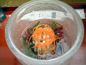 ひとしきり、昔話に花が咲く。 嫁の母である、おばあちゃんが亡くなったときの話や、私の脳内出血の話、そ の後私がTVに出演したとき、一家揃って、その番組を見てくれたそうである。 TBSの『第2の手塚治虫を作る』という番組だった。 私はあまりTVに出るのは、好きではないのだが、こうして私のことを思い出 してもらうには、TVというメディアにも、そこそこ関わっていたほうがいいか な?と思う。 もうひとつ驚くようなエピソードを教えてもらった。『桃太郎電鉄』をプレイ して、このお店を探して来たお客さんが、ひとりやふたりではないというのだ。 えっ? ゲームのなかでは、あわび料理屋としか表記していなかったような…。 えっ? 何10時間もかけてやっと? あっ? ひょっとして、『桃太郎電鉄 HAPPY』の99年ありがとうイベントかな? そういえば、物件駅ひとつひとつに解説を書いたことを思い出したぞ。それが 『桃太郎電鉄HAPPY』だったように思う。 へ〜〜〜! あの過酷な99年をクリアした上に、ひとつひとつの文章を読ん だあげくに、この「あわびの源太」さんに来てくれたお客さんがたくさんいるん だあ! ますますうれしいなあ! 何たって、今回の北海道行きは、このお店に行くことをいちばん楽しみにして いたのである。脳内出血で倒れて以来、寒い土地に行くことは、ずっと禁止され ていた。だからこそ、冬場にこのお店に来るということは、私にとってとても大 きな意味があるのだ。 正直言って、脳内出血で入院していたときは、こうして冬の北海道へ来れるよ うになるんてことは想像できなかった。この冬のクリスマスで、5年になる。そ の間のリハビリの状況がかなり良好なので、ついに決意して、来たのである。 さて、「あわびの源太」さんのあわびのほうの味を解説せねば。 ガラスの器に入ったあわびが出る。 水貝と呼ばれる料理だ。 これがテーブルに置かれた瞬間に、海水の匂いがぷうんと鼻をくすぐる。これ がたまらないのだ。硬いままなのに、食べやすいように、切れ目が入っていて、 まさに海辺で取れたままのあわびを、漁船の上で食べているような気分になる。 ちなみに、いつも仕事が終わると、さっさと帰ってしまう土居ちゃんがこうし て、きょうも札幌にいるのは、この水貝のためだったのである。ずっと私が土居 ちゃんに、水貝の話ばかりしていたからね。サザンオールスターズのベーシスト・ カズ坊(関口和之)は以前このお店でこの水貝を食べたことがあったので、本当 は今回いっしょに来たかったんだけど、竹中直人さんをプロデュースした『口笛 とウクレレ』のキャンペーンがぎっしり詰まっていて、来れなかったのだ。 「え〜、あのお店に行くんだあ! う〜ん。いいなあ! 行きたいなあ…。無理 だなあ…。う〜ん…!」 さらにもうひとり、来る予定で来れなかった男がいる。 『ダビスタ』伝道師の成沢大輔くんである。 先週の仙台牛ツアーを辞退してまで、今回のあわびを食べに来るために、スケ ジュール調整をしていたのだが、年末はゲーム攻略本の書き入れ時。だから今は 締め切りラッシュなのだ。 このお店の御主人がまた、競馬マニアだし、私はお酒が飲めないのでよくわか らないのだが、このお店は特別美味しい日本酒が出るそうなのだ。 美味しいあわび。競馬。日本酒。 まるで成沢大輔くん、そのもののお店ではないか。 ふっふっふ。成沢大輔くん、思い切り悔しがらせてあげよう! たっぷり、たっぷり、写真を掲載してあげよう! あわびの上に、ウニが乗っているだけじゃないんだよ。下から燃やしているん だよ。うちの娘がその炎を吸い込んでしまって、げほげほしてたのが笑えるけど。 黒い器にとろろが入っているけど、これは「秀飯(しゅうはん)」という名前 がついている。いい名前だねえ。名前どおり喉越しがなめらか。 さらに私がいちばん大好きな「あわびの雑炊」が出る。 雑炊なのに、白味噌風味。まるでクリームのような味だ。 もちろん、全料理にあわびが入っている。 ![]()