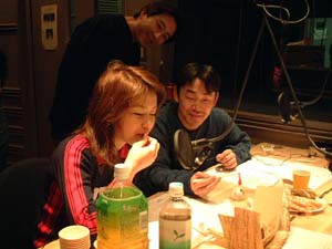 12月28日(木) 午後12時。赤坂「皆実(みなみ)」にて、『ヤングサンデー』編集部の石川亨くんと、 菅沼真理(通称:スガネマちゃん)さんと、私と嫁の4人で、松江の鯛めし。午後1時。TBSへ、石川亨くんと。 きょうは『有限会社 桃太郎商店』の年末最後の録音だ。 石川亨くんは『なんてっ探偵(ハート)アイドル』に役立つかもしれないということで、 ラジオ番組の現場を取材。そのうち殺人現場として『有限会社 桃太郎商店』が登場する かもね。 録音を始める前に、私が山形新庄で買ってきた「のど焼けだんご」をみんなで食べる。 ![]()