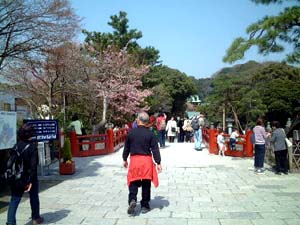 小町通りは、横道に入っても、いろいろおもしろいお店や、魅力的なお店 が多くて、ここ当分、探索に困らないくらいだ。 鶴岡八幡宮へ。 桜は七分咲きで、若宮大路の参道はみごとな桜のトンネルができていた。 もうすっかり春だね。 ちょっと前まで、寒くて仕方がなかったのにねえ。 先週ぐらいまで、あと1回くらい、雪が降るとか思ってなかった? 思っ ていたよねえ。早く桜が満開になって、花粉症が終わってほしい。 ![]()