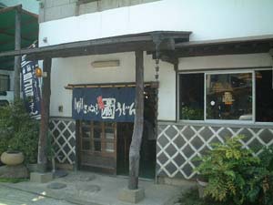 「桃娘(ももむす)」のふたりと、私、土居ちゃんが訪れる設定。 くくっ。一般のお客さんに混じって、カズ坊(関口和之)がうどんを食べてい る! 映っちゃたらど〜するの! 本当に、カズ坊(関口和之)、うどんを食べ に来ているだけだよ〜! ![]()