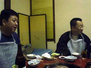 午後12時47分。岡山駅に到着。 榎本48歳が驚く。 「あれ〜〜〜、早い! こんなに岡山って近いんだ!」 高松と岡山が近いことを知らない人が多い。56分間。1時間を切っているの だ。四国に一度も行ったことがないという人はぜひ! 午後1時05分。岡山駅から、のぞみ16号に乗車。 またしても岡山駅の売店では、「桃太郎電鉄まつりずし」は売り切れ。 「桃太郎電鉄人形焼きも、桃太郎電鉄さぬきうどんも、桃太郎電鉄まつりずしま で、岡山で売ってるんだあ! すごいなあ!」と、榎本48歳が驚く。 じわりじわりと、中国四国地方に、桃太郎電鉄は版図を広げておりまする。 まるで『信長の野望』のように…。 午後2時8分。京都駅で下車。 私、土居ちゃん、榎本48歳の『ジャンプ放送局』のメンバーがこうして旅行 することは、10年ぶりぐらいなので、高松の帰りは、京都ですごして行くこと になったのだ。 八条口から、改札口を出ると、予定通り、ヤサカタクシーの宮本さんが迎えに 来てくれた。 「宮本さん、貧乏神のモデルの榎本くんです!」 「ははは。宮本です!」 私と嫁は、京都のマンションへ。 土居ちゃんと、榎本48歳は、京都ホテルへ。 午後3時30分。再び、私、嫁、土居ちゃん、榎本48歳の4人で、今宮神社 のあぶり餅のお店「かざりや」へ。 あぶり餅のお店に来るのは、ひさしぶりだ。 4人で、6人前のあぶり餅を食べる。 「え〜、4人なのに、6人前も注文するの?」と、榎本48歳。 「あのカズ坊(関口和之)ですら、ここに来ると、2人前食べるからね! 私だ って、ダイエット中でなければ、軽〜く、2人前食べたよ!」 「ええ〜、そんなに食べられるかなあ!」と言いながら、榎本48歳は、2人前 のあぶり餅をたいらげ、お店の人がサービスにとくれた、半人前まで、ぺろりと 食べていた。 「はっはっは〜! ほんとに食べられちゃいますね〜!」 「だから言ったじゃないか!」 午後4時30分。土居ちゃんと榎本48歳は、京都市内見物へ。 嫁は、すぎやまこういち先生ご夫妻の家まで、コンピュータのお手伝いにでか ける。 私は、仕事場に戻って、仮眠。 午後7時。寺町三条の「三嶋(みしま)亭」へ。 土居ちゃん、榎本48歳に、高松から戻って来た、ストロウ・ドッグスのすと ろう小泉くんと石川キンテツくんも到着。 合計6人で、「三嶋(みしま)亭」のオイル焼きを食べる。 ![]()