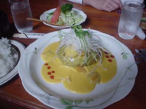 白味噌のハンバーグは、妙な味だ。 おいしいことは、おいしい。 ただ、微妙に評価が難しい。 お肉は、まあまあ。白味噌がいい。 蕪(カブ)も入っていて、白味噌との相性が、抜群にいい。 要するに、投手として、ドラフト指名しようかと悩んでいたら、あまりにもバッティ ングのほうがいいので、どうしたもんかなあ…なのだ。 早い話、この白味噌仕立てで、ハンバーグをミートボールにして、白味噌がからみや すくしたら、もっとおいしくなると思う。 嫁のかぼちゃハンバーグも、かぼちゃの味が実にいいけど、ハンバーグのほうが、中 の上なのだ。 リトルすぎやまである娘、曰く「近所にあって、ランチのときに、ここのハンバーグ は変わっているのが多くて、おいしいんだよ!と、知り合いを誘うにはいいお店」とい う表現であった。 回りくどい。 残念ながら、ハンバーグ・ベストテンには入らず。 ベスト20位以内なら、私は入れるけどなあ。 家から半径300メートル以内にあったら、よく利用するお店になると思う。 このお店の近所の人は、ぜひ! 午後1時。衣笠の立命館大学近くの「カフェ山猫軒」へ。