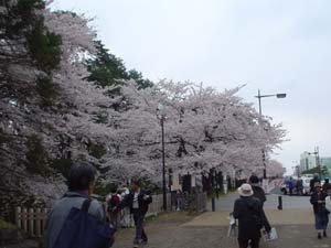 公園の係りの人たちなのだろう。 高枝挟みで、枝を切っている。 聞いてみると、枯れた枝を切っているそうだ。このほうが、来年もまたいい桜が咲 くらしい。 こういう発見と影の仕事が、何100年も伝承されているのが、素晴らしい。 闇 雲に弘前城の桜が、毎年勝手に咲いて、勝手に枯れていくわけではないんだね。弘前 城では、夜桜を見たお客さんたちが帰ったあとに、毎日清掃しているそうだ。 橋の上で、地元の人が、観光客相手に「ここからの眺めは、ハドソン川のポトマッ ク河畔に咲く桜と似ています」と説明していた。