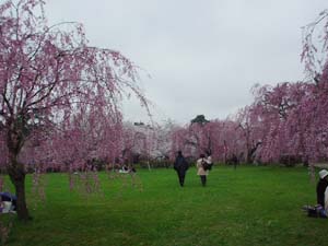 おお! あのポトマック河畔の桜だよ。 こんな感じなのか。 肉眼で見る機会はないだろうなあ。 ああ、もう! どこかに避難しないと、びしょぬれになるくらい、雨が激しくなっ てきた。 出口が見つからない。 どこかで雨宿りしても、まだこの先ずっと雨は降り続くのだろう。