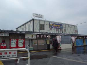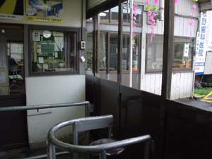 閉店になったスーパーの玄関で、ジャンパーが1000円で売っていた。 あれ? どこで買えばいいの? 2階? のんきだなあ。このまま持って行っちゃう人いないのかなあ? …と思ったら、ちょうど若いお兄ちゃんが2階から降りてきた。 「1050円です」 こっちは、まだ外税かい! バイト風のお兄ちゃんだったから、まだ税制が変わったの知らないんじゃないか? おお! おかげで寒さをしのげたよ。 薄手のジャンパーだけど、ビニールのレインコートよりも、格段に暖かい。 午後2時30分。港町の盛り場のような飲食店街を抜けると、弘南鉄道大鰐線の弘 前中央駅が見えてきた。 まるで、観光地のバスセンターみたいだ。 風情のある駅舎に、ホーム。