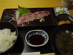 午後12時。鎌倉駅に着くも、どこで食べようかと悩むうちに、雨が本格的に降り そうになってきたので、勝手知ったる「仲の坂」へ。 アジの刺身定食に、イサキの刺身定食。 イサキは初めてだけど、昆布締めみたいにコクがあって、実においしい。