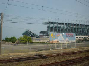 鳥栖(とす)駅に着いた。 いつものように、駅に覆いかぶさるかのように大きな鳥栖スタジアムが左側に見え る。サッカー競技場であり、サガン鳥栖の本拠地だ。