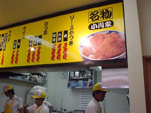 並にしたら、ソースかつが3枚入っていた。 ご飯にも、ソースが染み込んでいる。 ただソースかつのほうに、ソースの染み込み具合が足りない気がする。 でも、めざしているのはファーストフードだろうから、このくらいのソースの染み 込み具合なら、及第点。 この「小川家」で、ソースかつ丼を味わってもらって、ぜひ福井のもっと、かつに ソースがたっぷり染み込んだソースかつ丼を食べてほしいものだ。