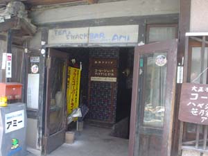 でもちょっと点在しすぎていて、まとまりがもうひとつ。 まだこれからなんだろうなあ…。 できれば、大正風の洋食屋さんが並んでいるとか、シベリアケーキのお店とか、大 正時代の音楽が町に流れていたら、もっとよかった。 でもこのままでも、じゅうぶんよかったんだけどね。 ちょっと岩村の歴史的美観の充実度に、こっちの町も期待しすぎてしまった。 町中にある昔風のカフェレストランに入って、洋食のひとつも食べていかないと。 そう思って「R」に入ったんだけど、大行列。 ファミレスのように順番を待っているお客さんは紙に名前を書いているのだが、紙 が終わっていて、みなさん名前を書くところがない。 ところがお店の人が紙を変えようともしないものだから、お客さんたちが憤慨して いた。 「名前書くところが、にゃあよ!」 名古屋圏だなあ…。 その後、お客さんたちどうだったかは、私はお店に入るまでに20人待ちする気が ないせっかち男なので、退散してしまってわからない。 ソースかつ丼は、ちょっと食べてみたかった。 午後1時。「浪漫横丁」の屋台村みたいなところで、五平餅とみたらしだんごと、 岩村で買ってきたかんから餅で昼食。