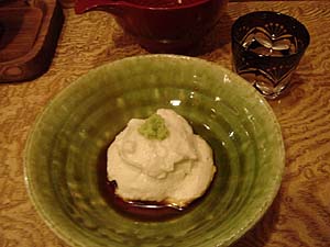 いいお店の表現のひとつに、「人に教えたくないお店」という言い方があるけど、 このお店がまさにそれ。 どの料理もおいしいんだけど、なにしろ座席数20人をたったひとりの若主人が相 手する。おいしいから混むんだけど、精悍な若主人のことを考えると、10人ぐらい 相手にしておいしいものを作ってほしい気になってしまう。 名物の嶺岡豆腐は、味はごま豆腐、ねっとり感はまさに、そばがきのような珍しい お豆腐。おいしいよ!