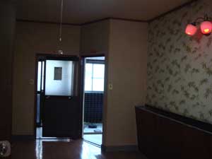 元旅館の壁を剥がして、耐震強度を調べる作業が始まっていた。