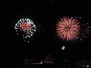 最初のうち、あまりにも近くで見たので、孫姉は「怖い!」とびっく りしたけど、そのうち慣れてきて「きれい!」というようになった。 孫妹は、明日で1歳なので、わけもわからず花火が楽しそう。