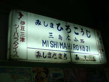 午後7時38分。終点、熱海駅に到着。 ちょいと三島まで、うなぎを食べに行っただけだけど、何だか日帰り 旅行に行って来たような満足感。 「桜家」のうなぎの美味しさと、三島広小路駅のノスタルジックな雰囲 気のせいだろうなあ。