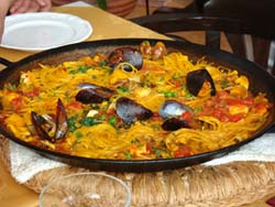 そのままミッドタウンのスペイン料理のお店へ。 あっ。お店の名前、メモするの忘れた。 パエリアのパスタ版というおもしろい料理があった。 嫁がスペイン旅行でおいしかったという生ハムが出てきた。
