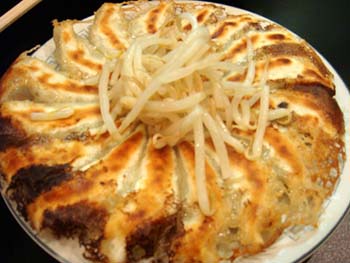 看板には「鍋貼強子きよ」と書いてある。 何て読むんだ? ええっ? 「鍋貼強子(こうていぎょうざ)」って、読むの? お店に入って、メニューを見ると「餃子」ではなく「強子(ぎょうざ)」 とある。 意味を聞きたいんだけど、接客が悪いと聞いていると、さすがに質問 しづらい。 強子(ぎょうざ)16個を注文。 串焼きミックス、ロースチャーシュー、お漬物なども注文する。 おお! 来た、来た! 典型的な円盤状に焼かれた餃子だ。 浜松餃子の象徴である、茹でもやしも上に乗っている。 お皿に付けタレをたらす。 意外と、タレは薄い。 餃子、いや、強子(ぎょうざ)を食べる。