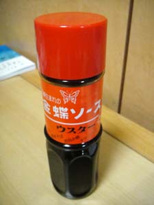 でもひとつだけ試してみたいことがあったのよ。 先週の『秘密のケンミンSHOW』をちょうど長崎のホテルで見た。 東京一郎転勤シリーズが長崎が舞台で、そのなかで、長崎の人たちは 皿うどんに、金蝶ソースをかけて食べる風習があると言っていた。 だから、長崎で金蝶ソースを買って自宅に送ったんだよ。