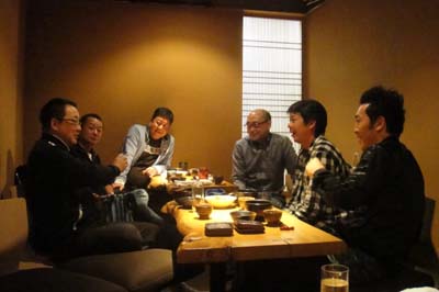 午後5時。テツandトモといっしょに、控え室へ。 午後6時。私、嫁、テツandトモ、マネージャーの川田友見さん、トモ くんのお姉さん、池毅さん、土居ちゃん、岩崎誠の9人で、表参道の宮 崎料理のお店「おやっとさあ」へ。