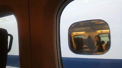 肉眼だと、車内の電光掲示板の文字はよく見えるけど、携帯で写メして も小さくて、よく見えない。 隣りの新幹線写しても、駅で止まってるから不思議じゃない。